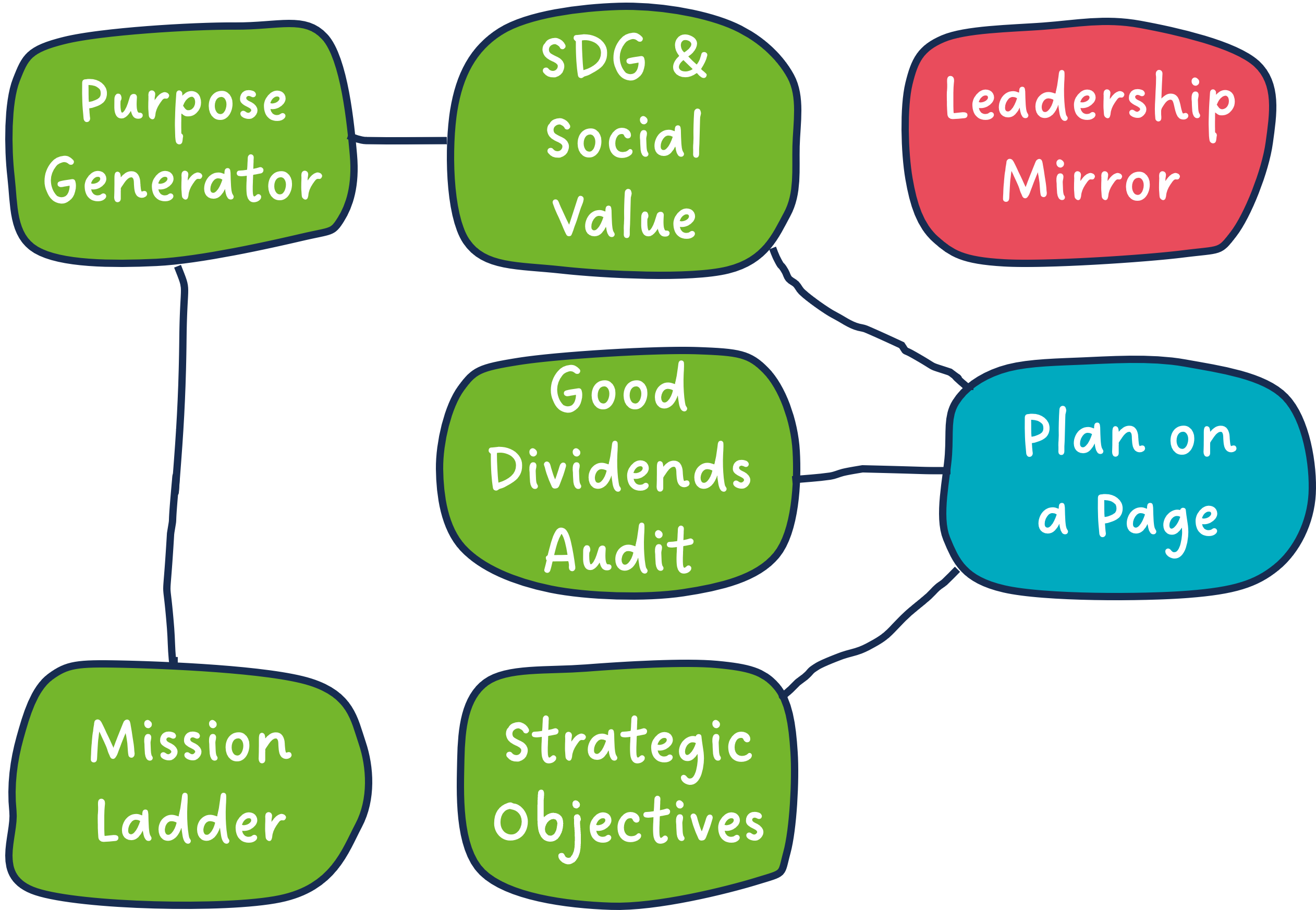 The Good Dividends tools are all designed to work together or independently to generate a Plan on a Page for your organisation.